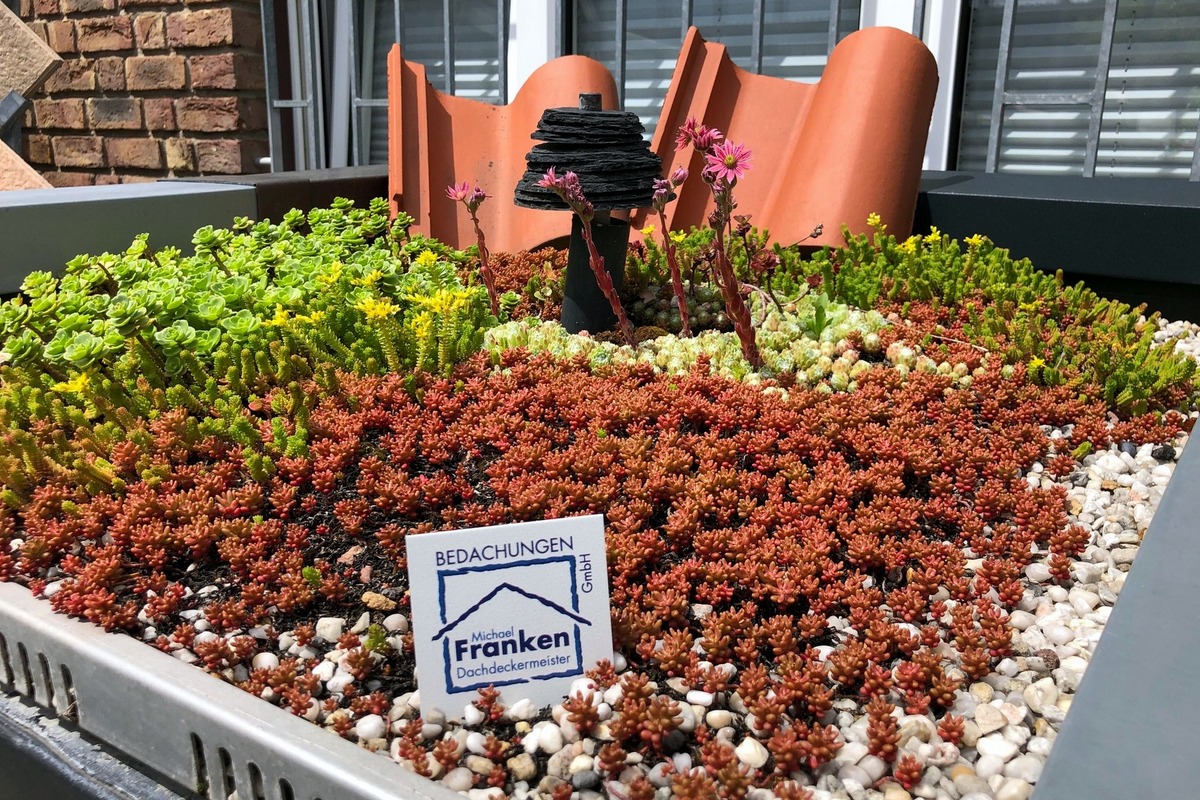 Die Begrünung von Fassaden, Flach- oder auch Schrägdächern ist schon seit langer Zeit ein Steckenpferd von Firmengründer Michael Franken. Während sie anfangs nur den Spaß am Gärtnern mit seinem Beruf verband, ist sie mittlerweile ein eigener Aufgabenbereich im Unternehmen geworden.